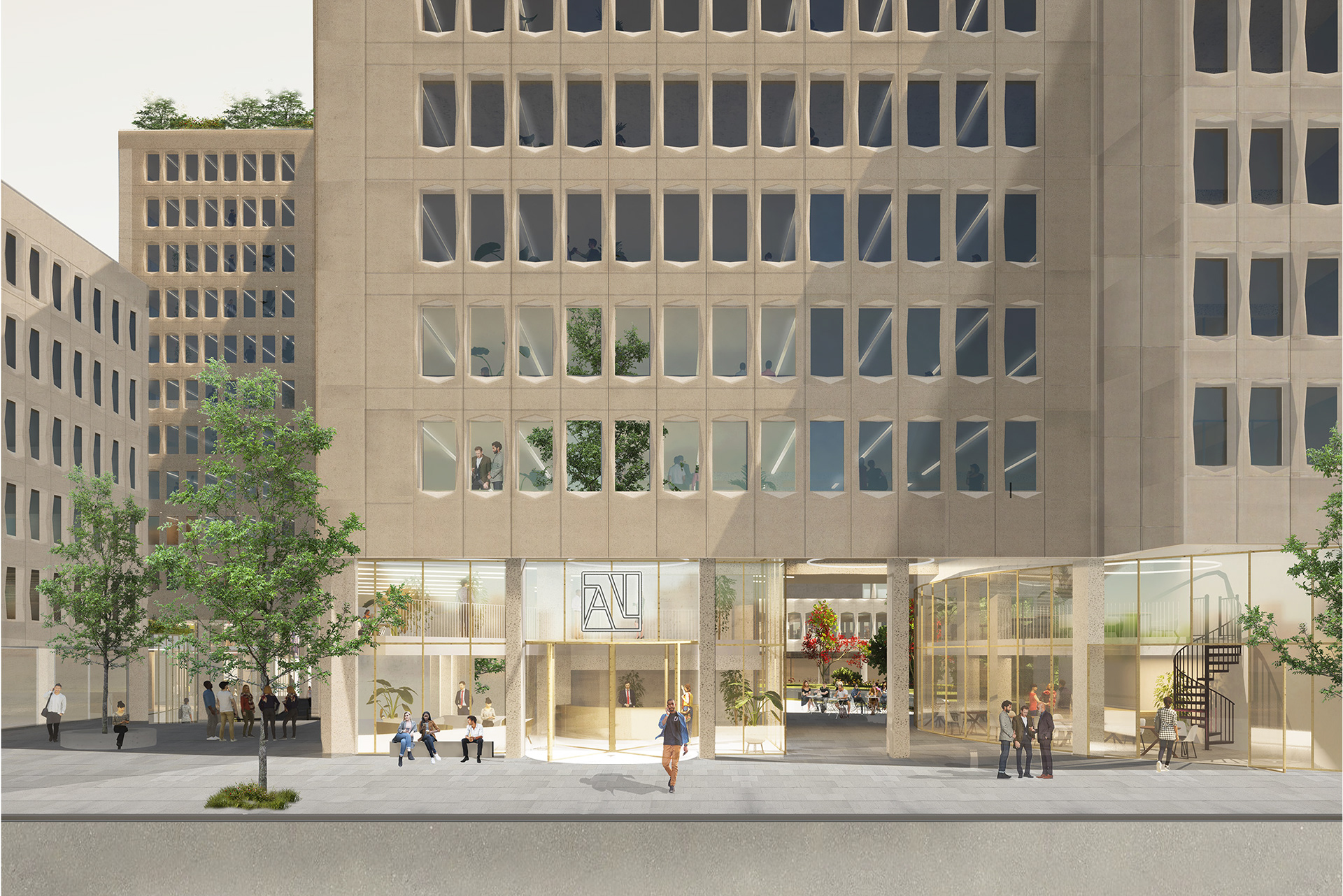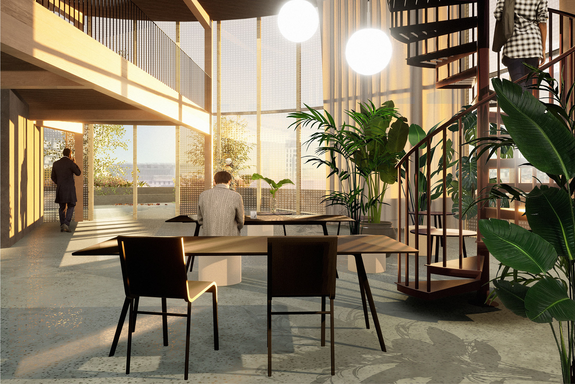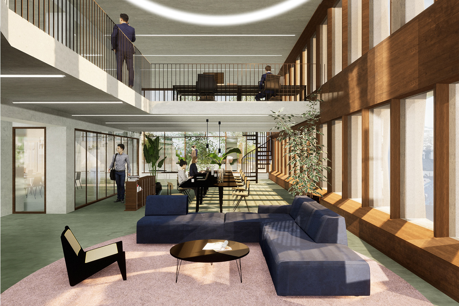The A\Tlier competition is a renovation project of an iconic seventies office building located in the European quarter in Brussels. It results from a collaborative research and design process on a historical, urban, architectural, and technical level. The proposal reinforces the iconic value of the building and the implications of the 21st-century contemporary office. These were achieved through a number of specific interventions, which considered the silhouette, ground floor activation, plan, and sections of the building.
