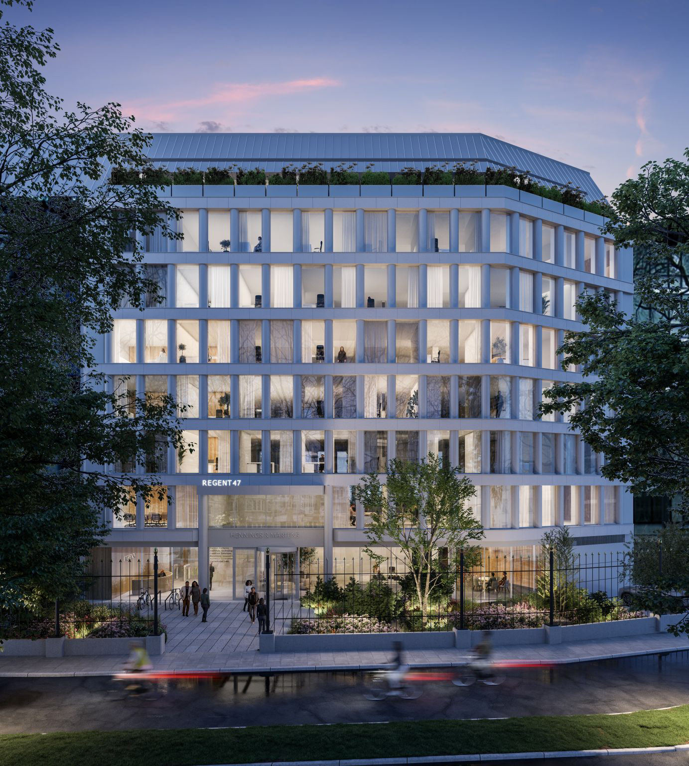 Project Regent, located on the Brussels ring road, aims for the sustainable and circular renovation of a 70s office building. The existing glazed facade will be replaced by a system of columns and beams containing insulation and technical installations, which will also add depth and character to the building. Existing ducts, floors and ceilings will also be recuperated. The front garden, back terrace and roof terraces will be developed as green oases. The result will be a BREEAM Outstanding, A+ energy label, WELL ready and a very comfortable working environment.