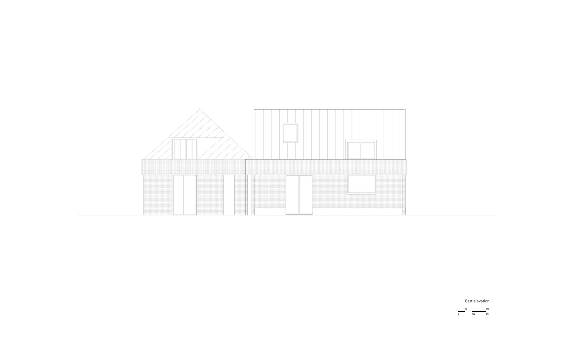 The proportions of the facade are maintained by adding a cornice that wraps around the building and frames the composition. Above the horizontal cornice extends a zinc roof that appears as an abstract metal landscape. The new pitched roof relates to the existing window openings on the ground floor to maximise light into the home.