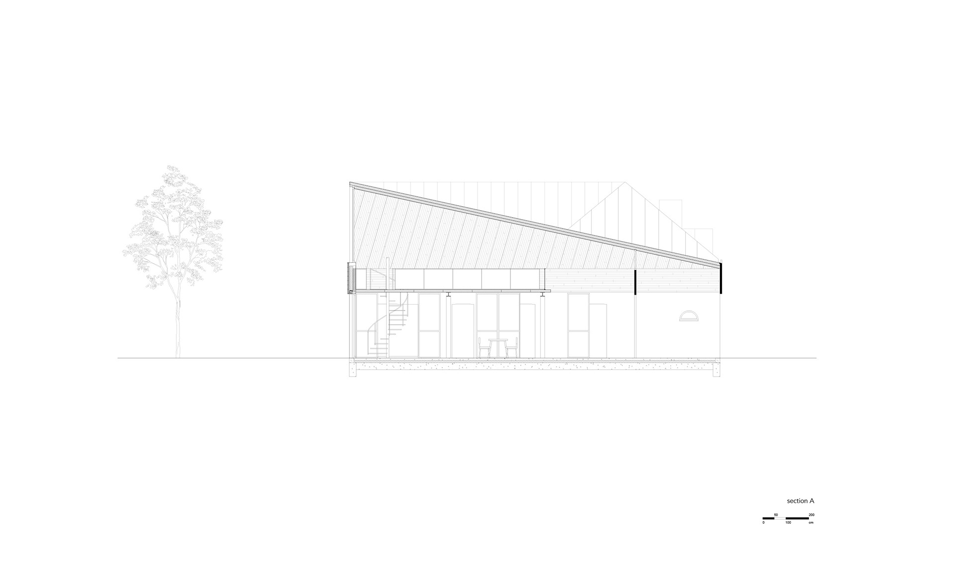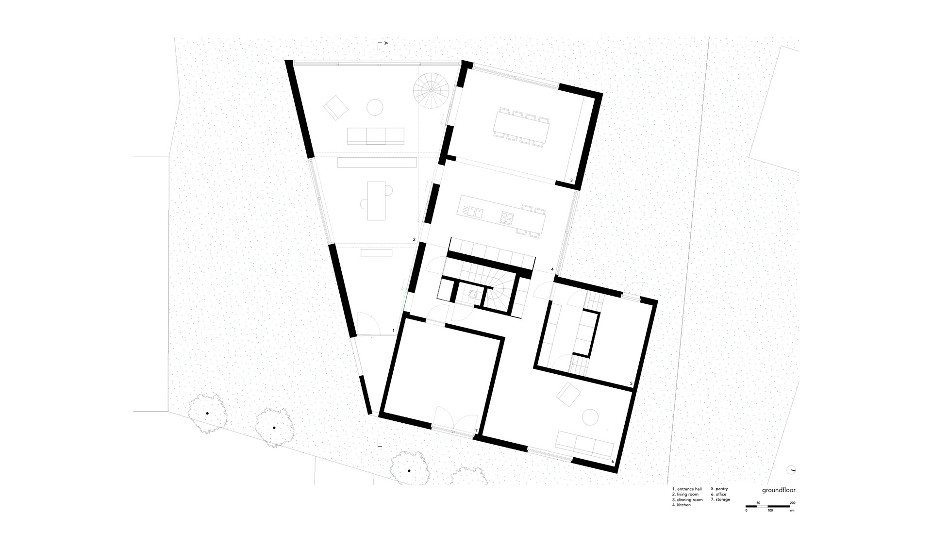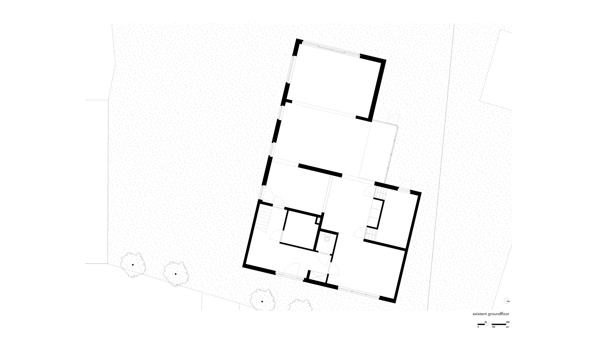 In the early 2000s, a modest red-brick farmhouse house was converted into an L-shaped home. Due to this shape, there was a limited relationship between the outside and specifically the garden. For this reason, the focus of this extension was the relationship of the garden to the indoor spaces. Therefore, a triangular addition was built that has the garden as its focal point and creates an outdoor area perpendicular to the street. This extension minimizes the visibility of any intervention from the street elevation. The layout follows the structure of the existing home by extending its logic into an open space that can be arranged as desired. This space extends into the garden and is structured by closed volumes with supporting functions.